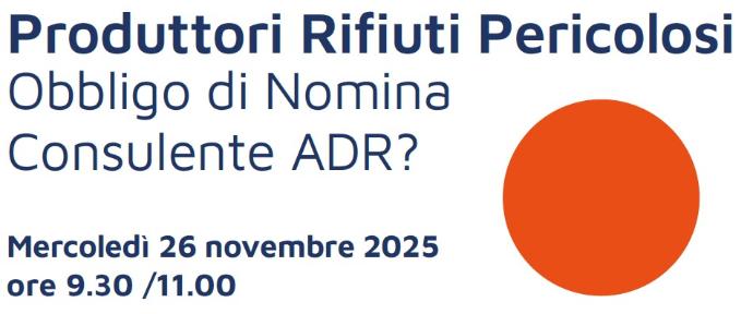 PRODUTTORI RIFIUTI PERICOLOSI: OBBLIGO NOMINA CONSULENTE ADR | 26 novembre 2025