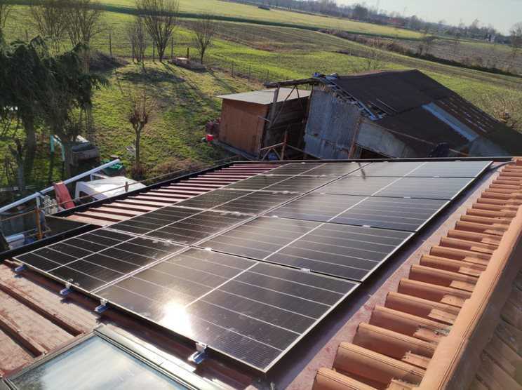 IMPIANTO FOTOVOLTAICO visto dall'alto di potenza 7,7 kwp, con un totale di 20 moduli fotovoltaici.